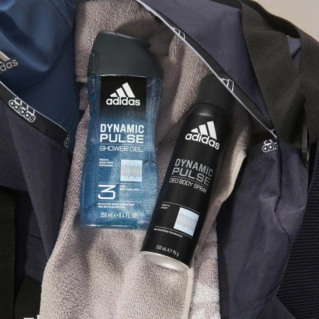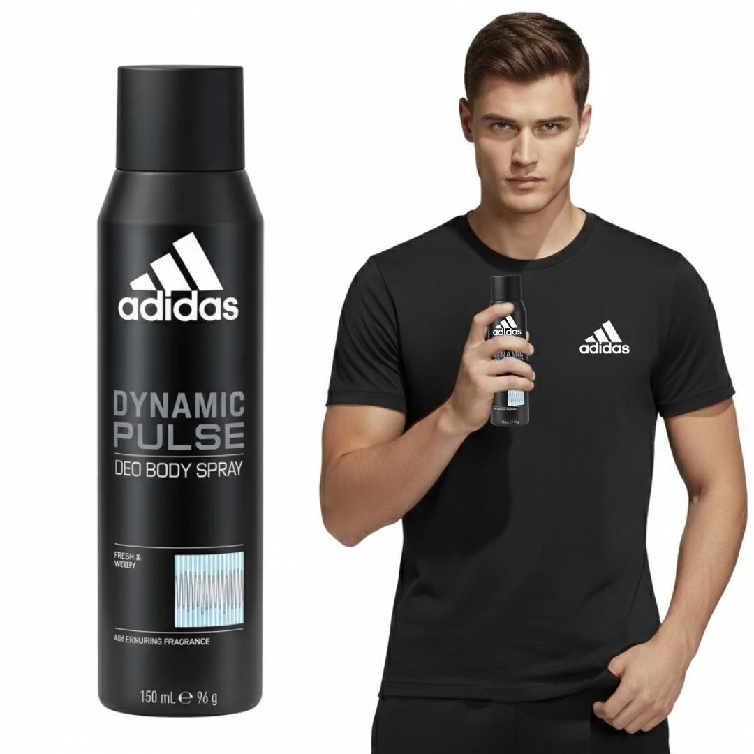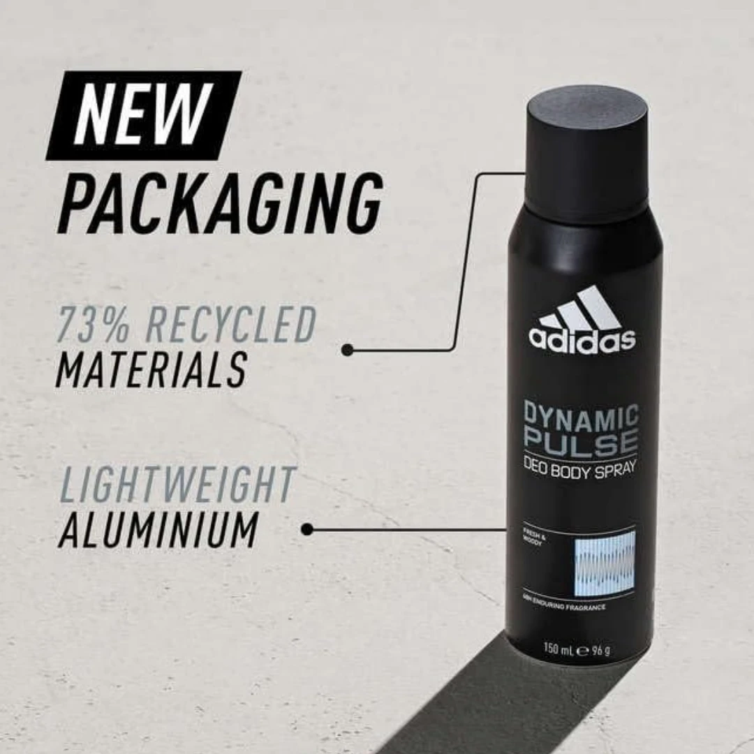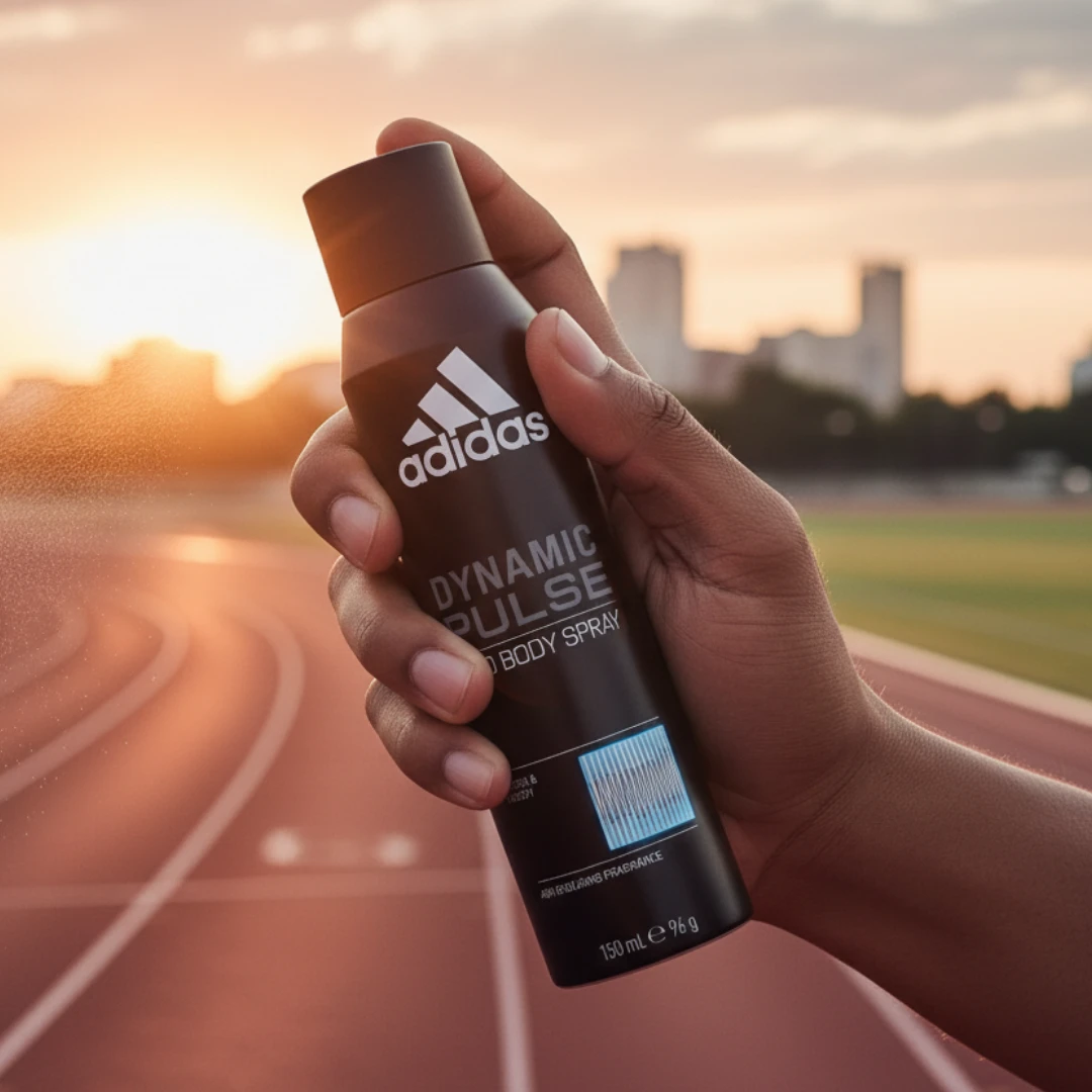 Get ready, Inspired by the sensations felt during an intense sport sessions, Adidas Dynamic Pulse deodorant body spray recalls the pleasant feeling of heat that invades the body during exercise and the pounding surge of the heart in the ears.
