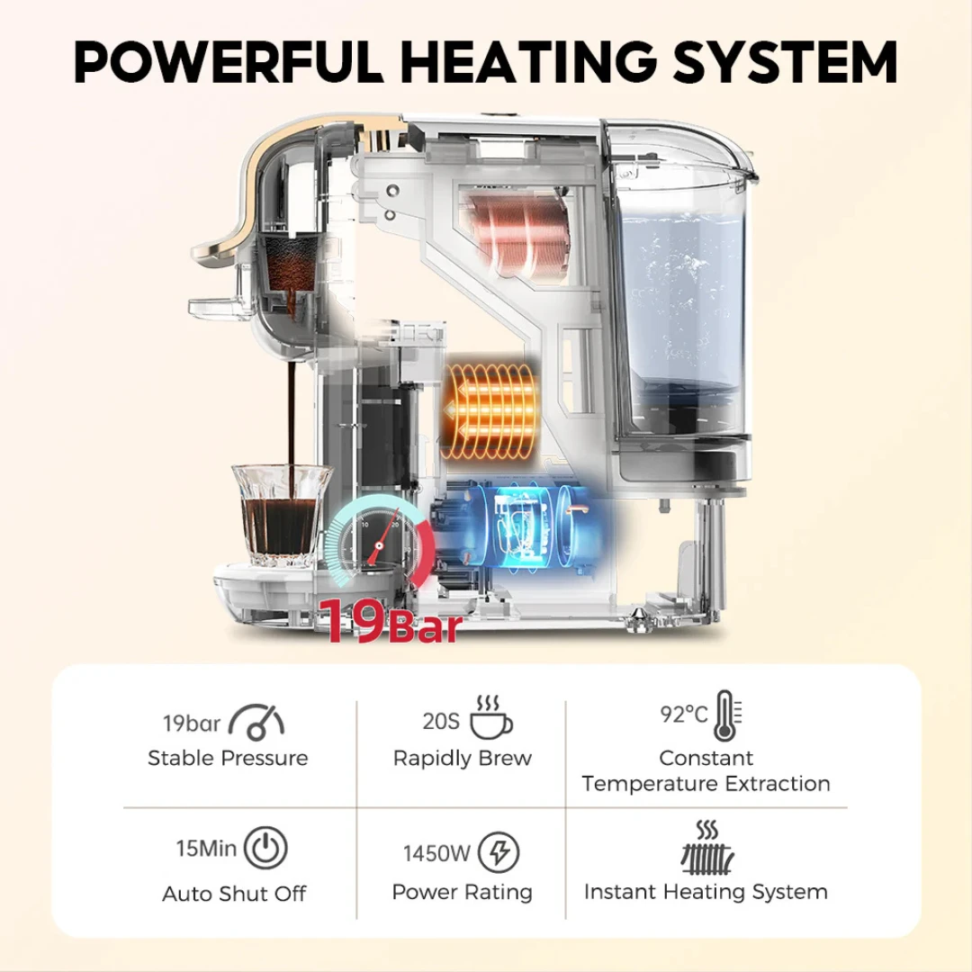 CAFELFFE Capsule Coffee Machine—your ultra-portable, all-in-one coffee powerhouse. Lightweight yet packed with pro features, it’s the smartest way to brew café-quality drinks without the bulk or hassle.
