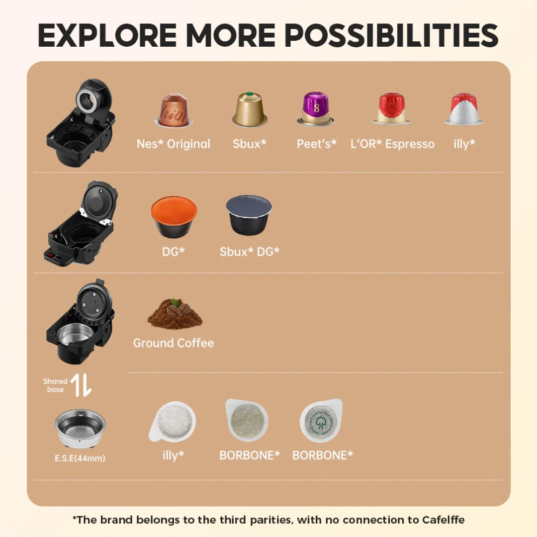 - Compatible with different system:Dolce-Gusto system, Nespresso system, ESE pod system, Coffee powder system.