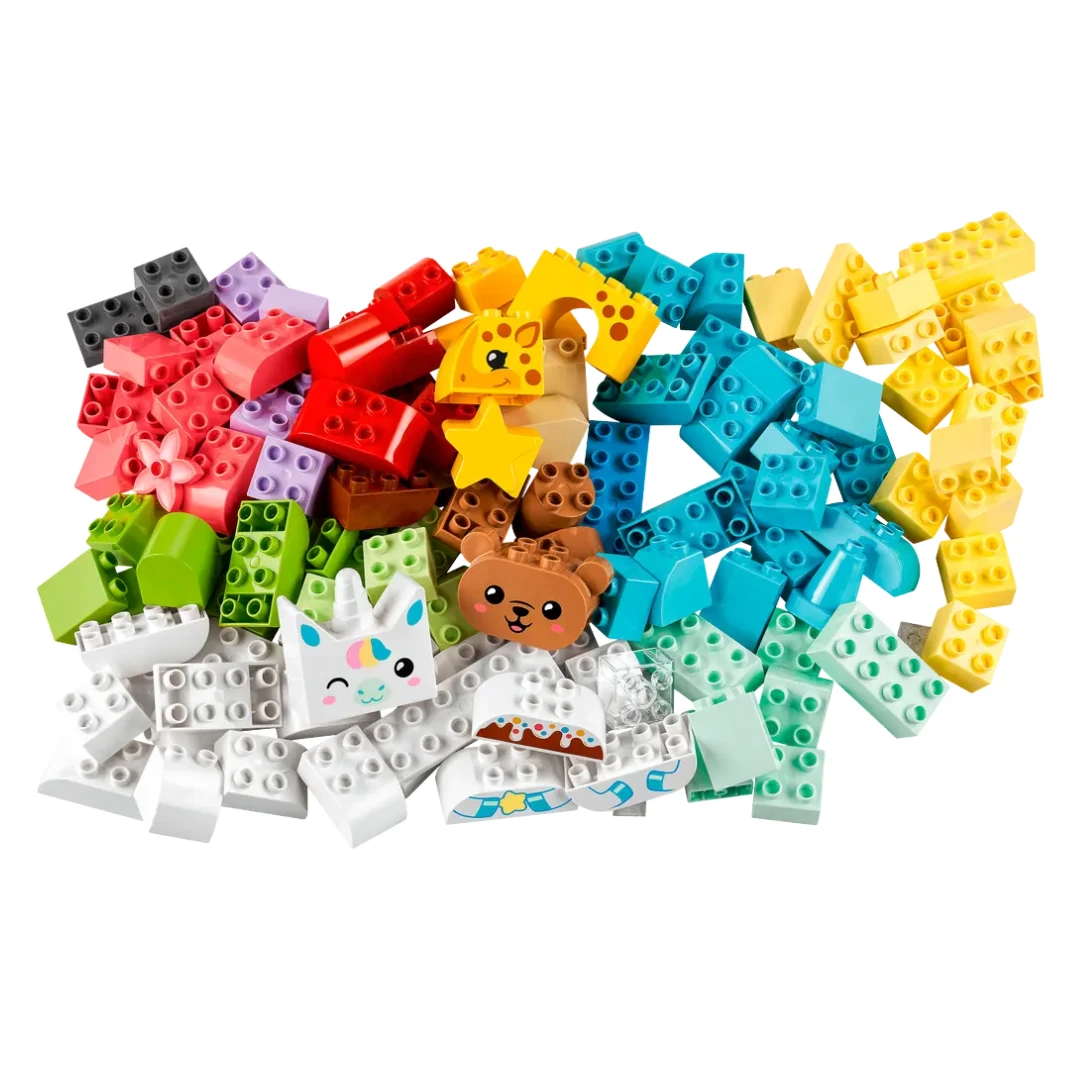 Kids combine the colorful assortment of toddler-friendly building bricks to create familiar objects – such as a rocket, heart, star, cake, unicorn, giraffe and a bear – and enjoy endless free-building fun. With colorful shapes and many models to make, this engaging playset effortlessly blends skill-building discovery with joyful, open-ended play.