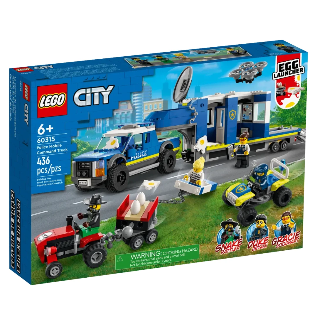 Kids can create their own LEGO® City Adventures TV series stories with the LEGO City Police Mobile Command Truck (60315) playset. It’s packed with awesome features, exciting functions and cool vehicles, including a toy police pickup and trailer with a jail, drone and ATV, plus a crooks’ tractor and trailer with an egg-splat launcher. Just add the Duke DeTain, Gracie Goodhart and Snake Rattler minifigures and let the fun begin!