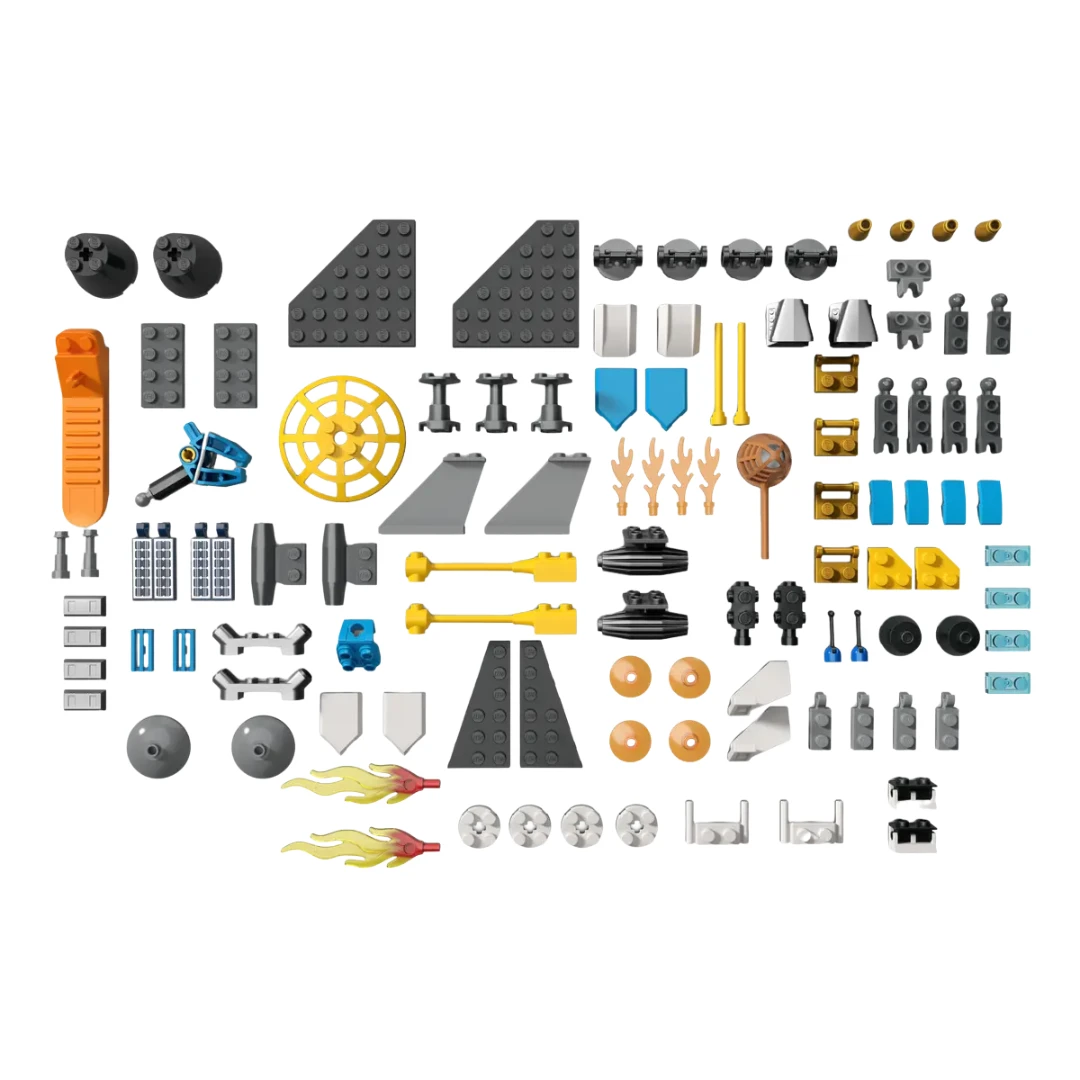 - What’s in the box? – All the LEGO® pieces kids need to build a mission spacecraft and solve instruction-free building challenges, plus 2 asteroids, a Mars setting, 3 minifigures and a robo-dog figure.