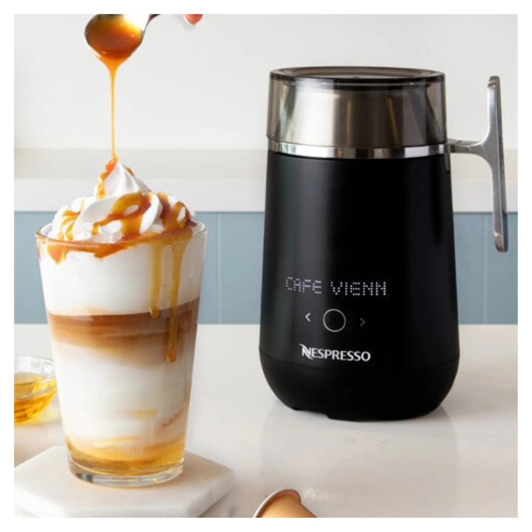 Experience the Barista matt black Milk device at Nespresso Oman for experience the perfectly frothed milk in your coffee with the perfection.