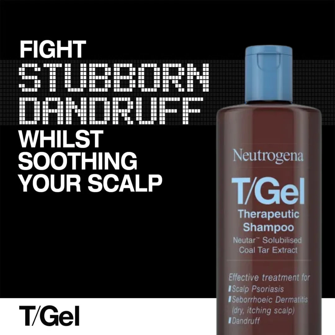 Neutrogena® T/Gel® Therapeutic Shampoo contains Neutar Solubilised Coal Tar extract, which treats itchy, flaky scalp. It is an effective treatment for dandruff, scalp psoriasis, and seborrhoeic dermatitis of the scalp.