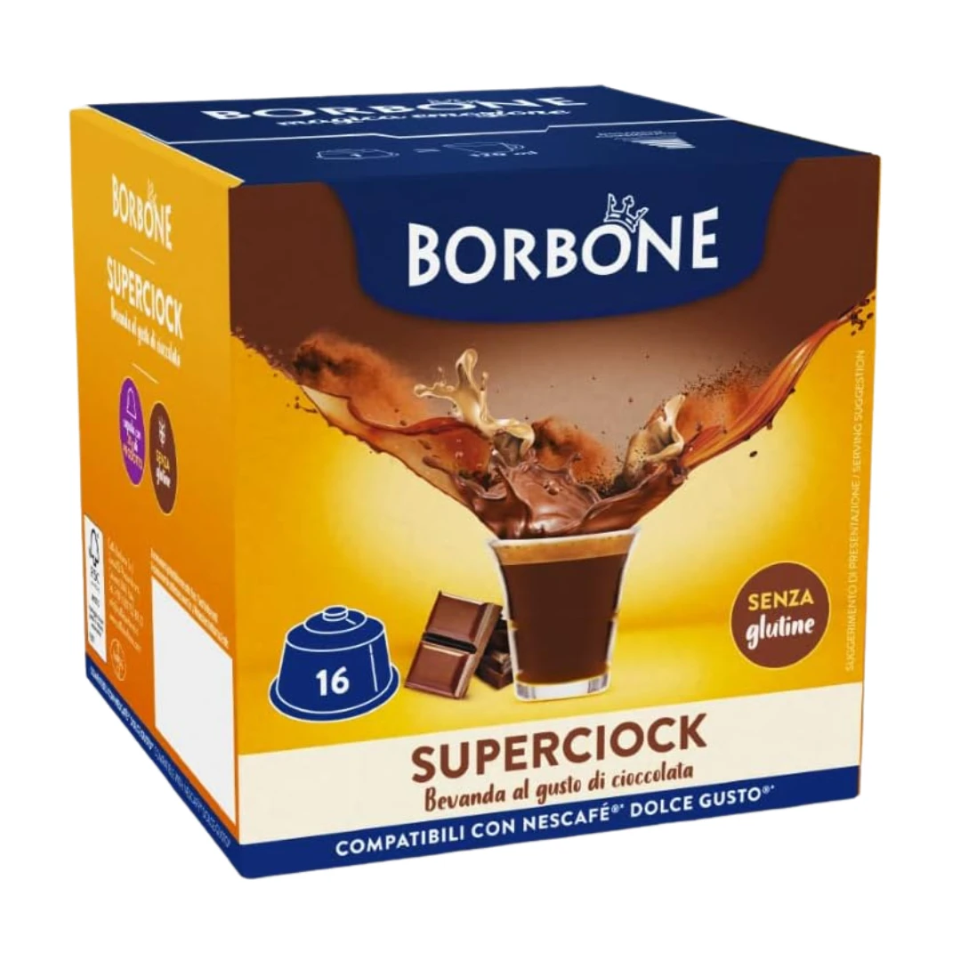 Caffè Borbone’s SuperCiok is a chocolate flavored drink in capsules, compatible with Nescafè* Dolce Gusto* coffee machines. The SuperCiok compatible capsules are part of the Capriccio Line, dedicated to those who want to enjoy an ever-changing, but always delicious break.
