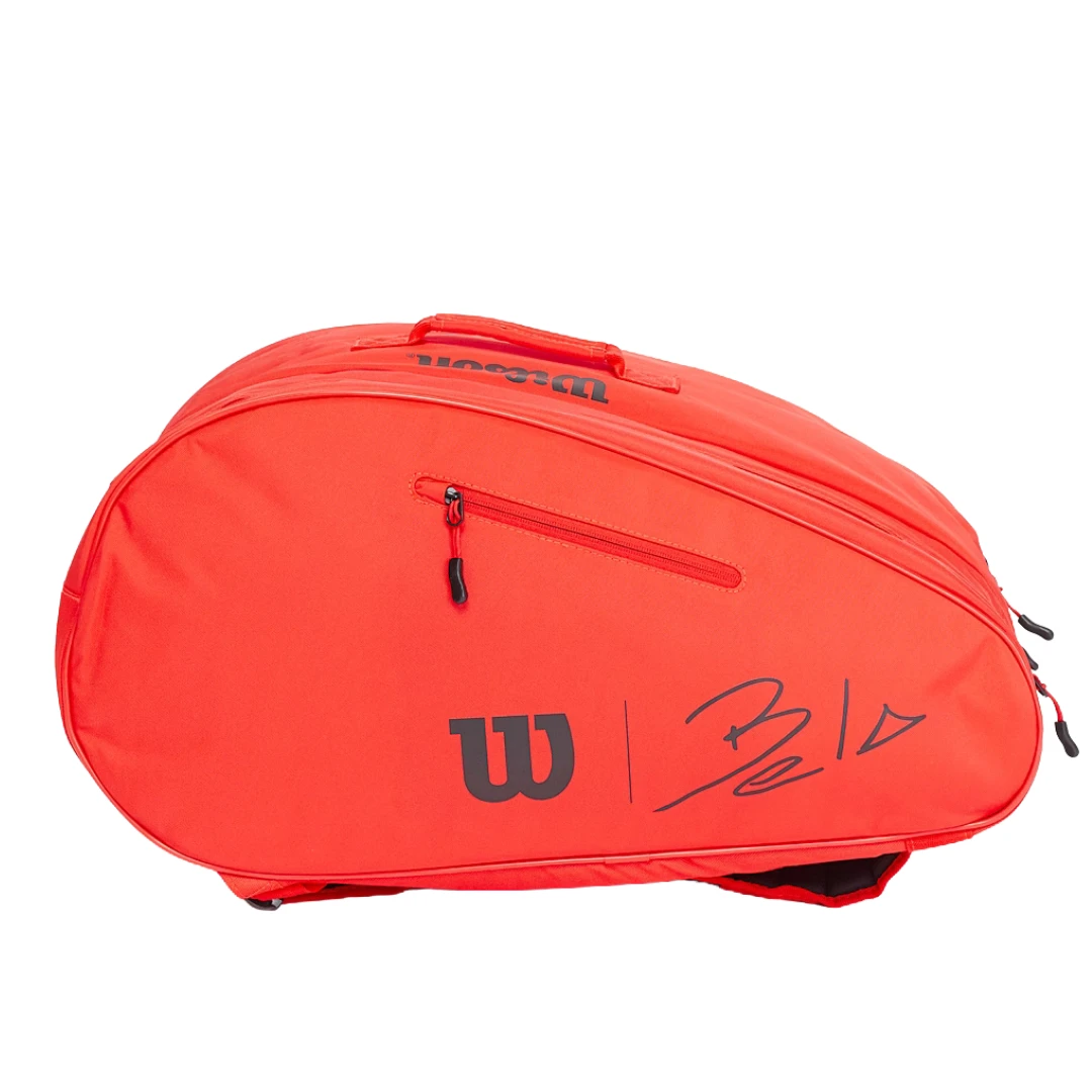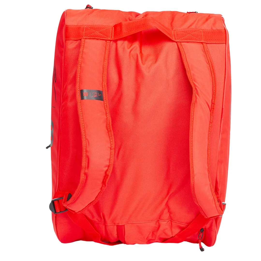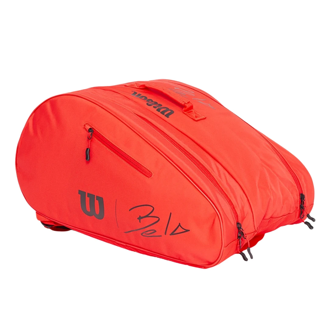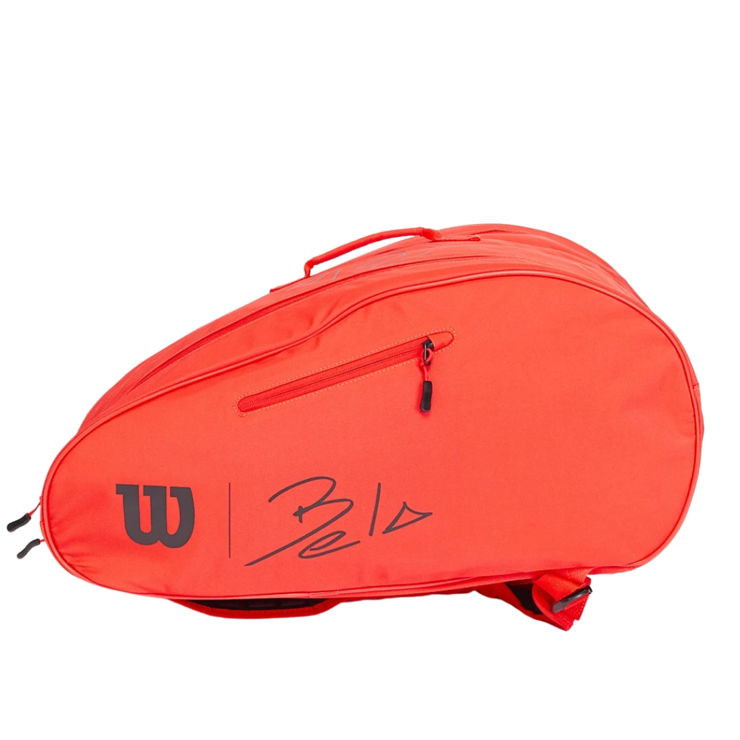 Built with high-quality materials, this premium bag is the choice for padel legend Bela. A sporty all-red base is adorned with Wilson x Bela branding, showcasing your support for the former world number one.