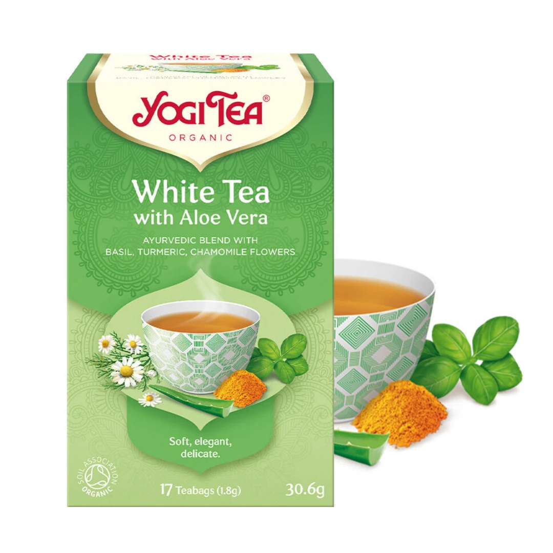 Yogi Tea has created a blend of white tea and Aloe Vera together with basil, turmeric and chamomile flower, combining to create an aromatic tea, full of delicious flavour and well-being.